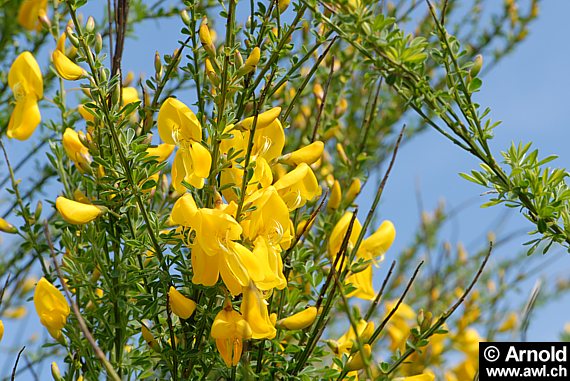 Besenginster (syn. Bram, Besenpfriem, Besenstrauch, Pfriemenstrauch).