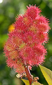 Rizinus (syn. Christuspalme, Hundsbaum, Läusebaum, Römische Bohne, Wunderbaum).
