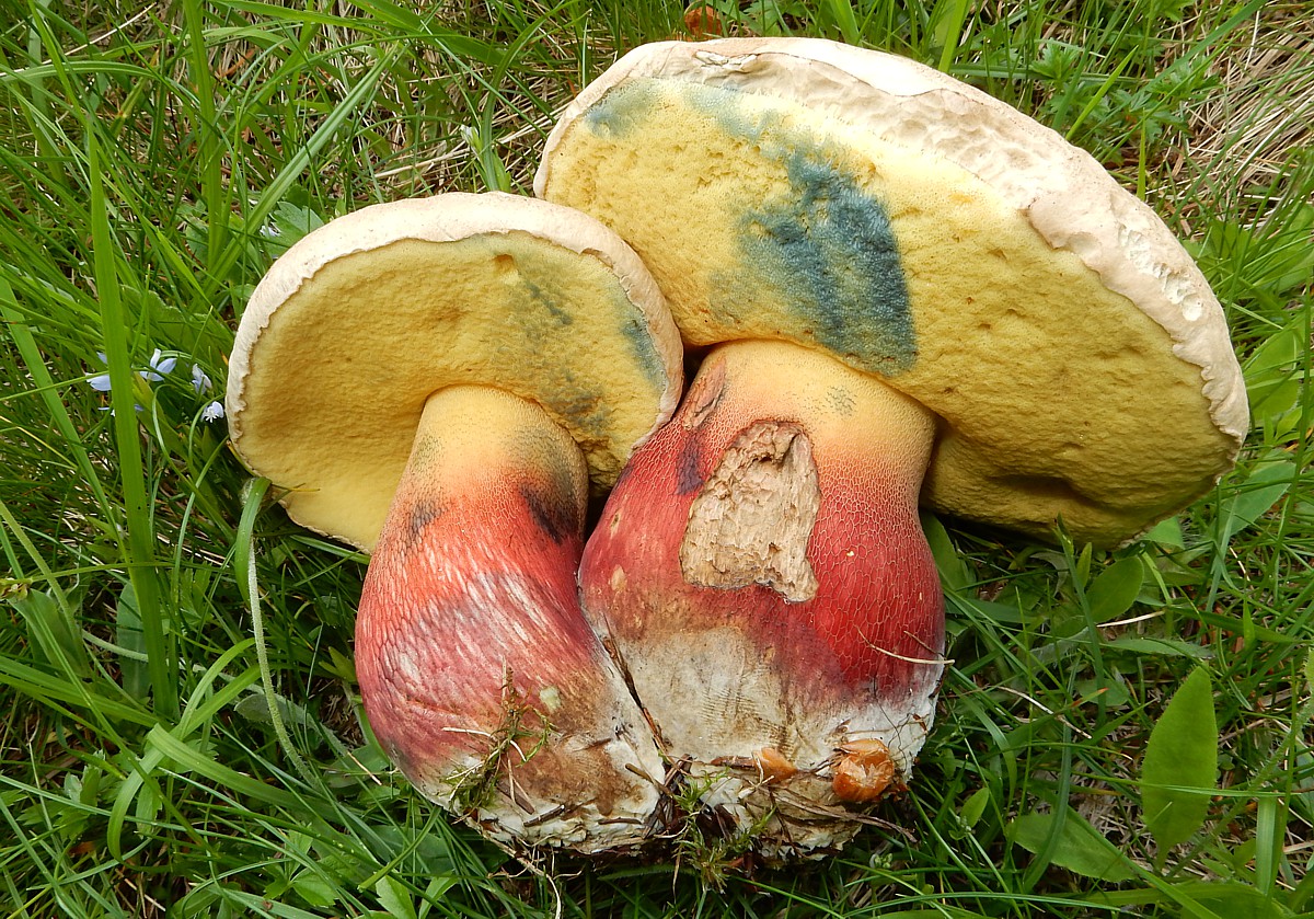 Der Rotfussröhrling ist in der Regel kleiner, schlanker gebaut und zeigt keine ausgeprägten roten Stielfarben wie der Schönfussröhrling.